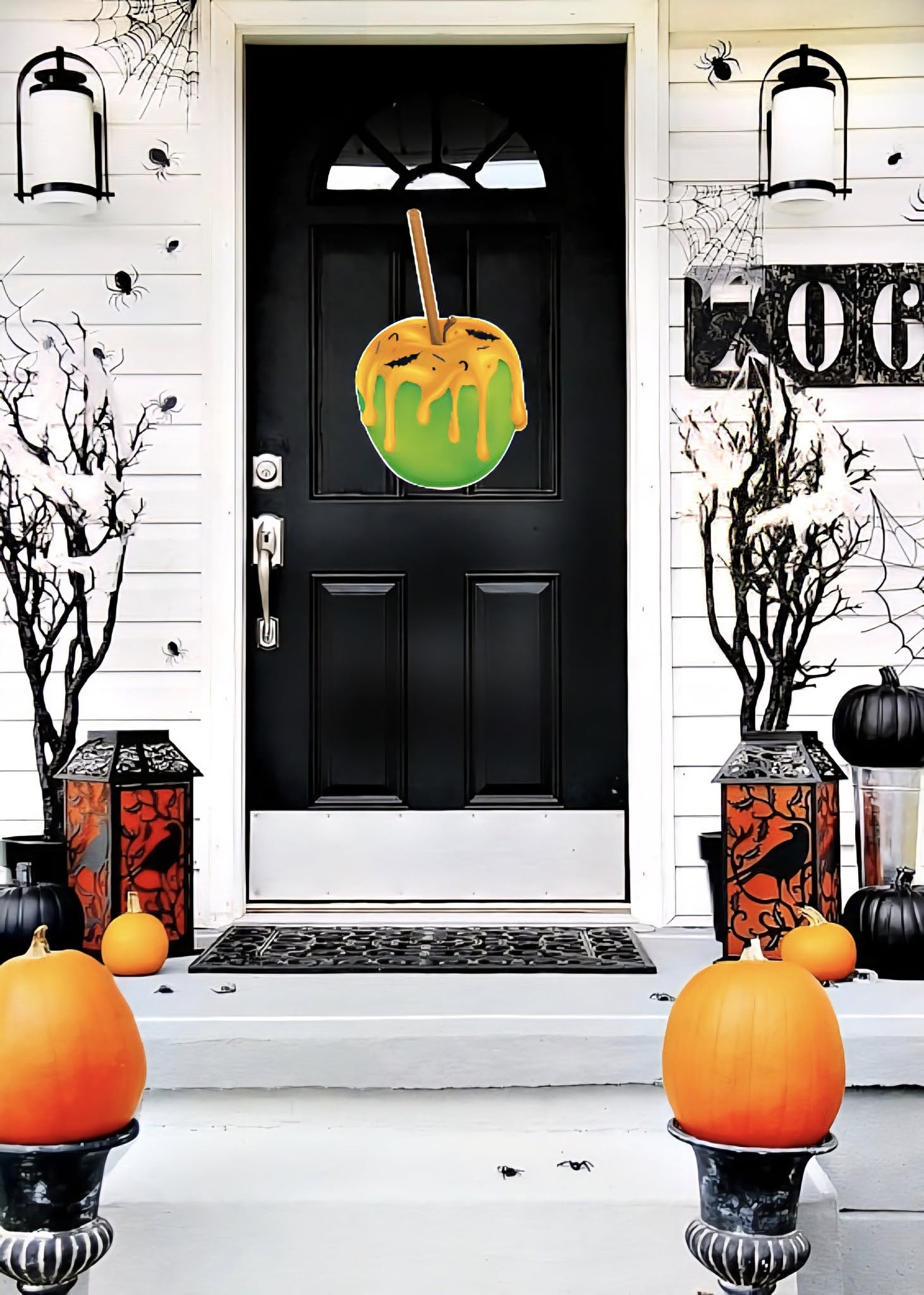 Dress up your door with the Halloween Candy Apple Door Hanger! Crafted from a PVC substrate and printed with UV resistant inks ensures this door decor will be weather resistant for years to come!